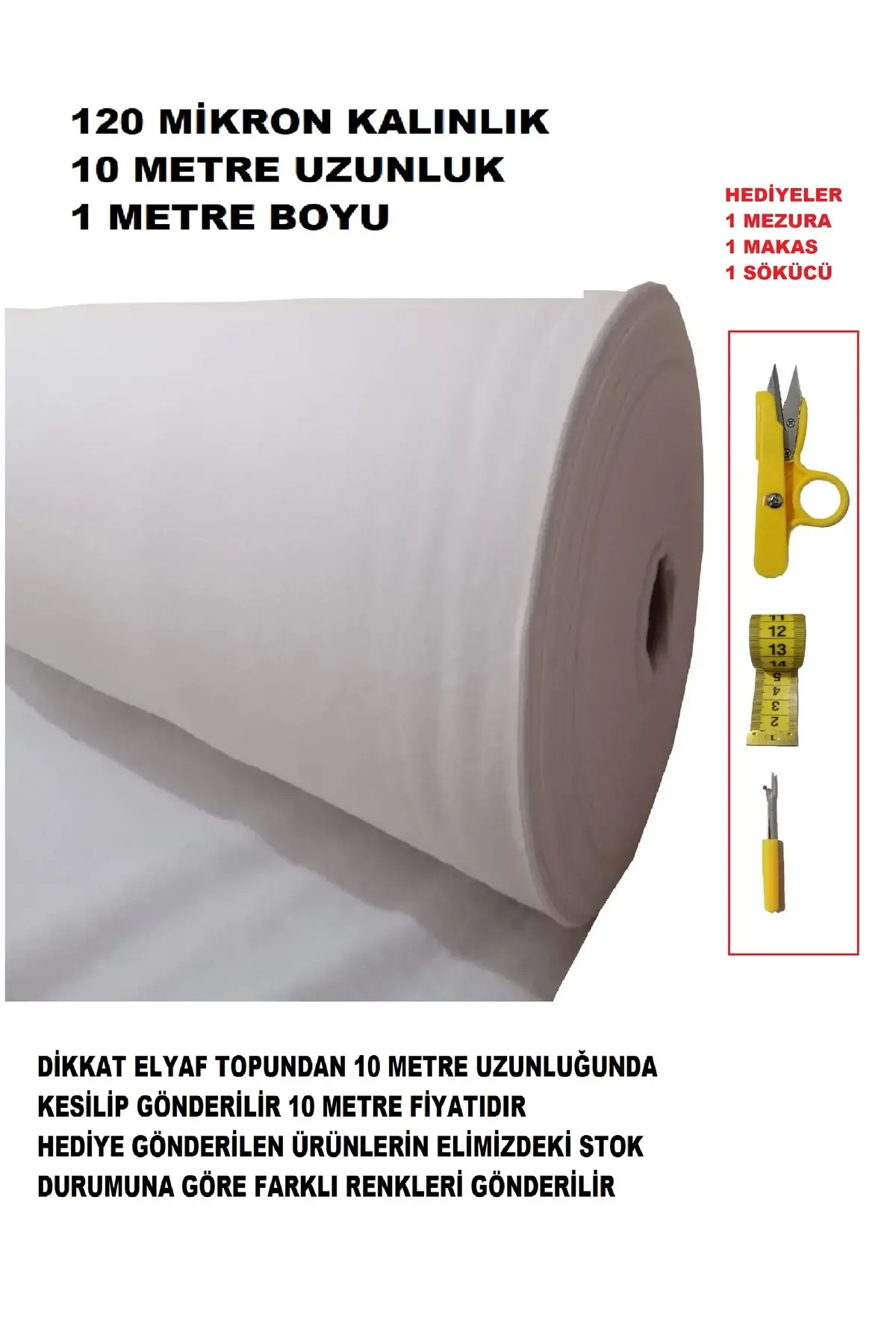 10 metre Fitillik elyaf, patchwork'de ve diğer dikişlerde kullanılan dolgu malzemesi ; 10 metre uzunluğunda 1 metre eninde gönderilir ; 120 mikron kalınlığında ; sıkıştırılmış elyaf ince ; 120 gr kalınlığında ; terziler tarafından ceket, palto dikiminde kullanılır.; ; NOT: HEDİYE GÖNDERİLEN HEDİYELERİN ELİMİZDEKİ STOĞA FARKLI RENKLERİ GÖNDERİLİR.; ; ELYAF TOPUNDAN 10 METRE UZUNLUĞUNDA 1 METRE ENİNDE KESİLİP GÖNDERİLECEKTİR ; VERİLEN FİYAT 1 ADET 10 METRE UZUNLUK 1 METRE EN İÇİN GEÇERLİDİR ;