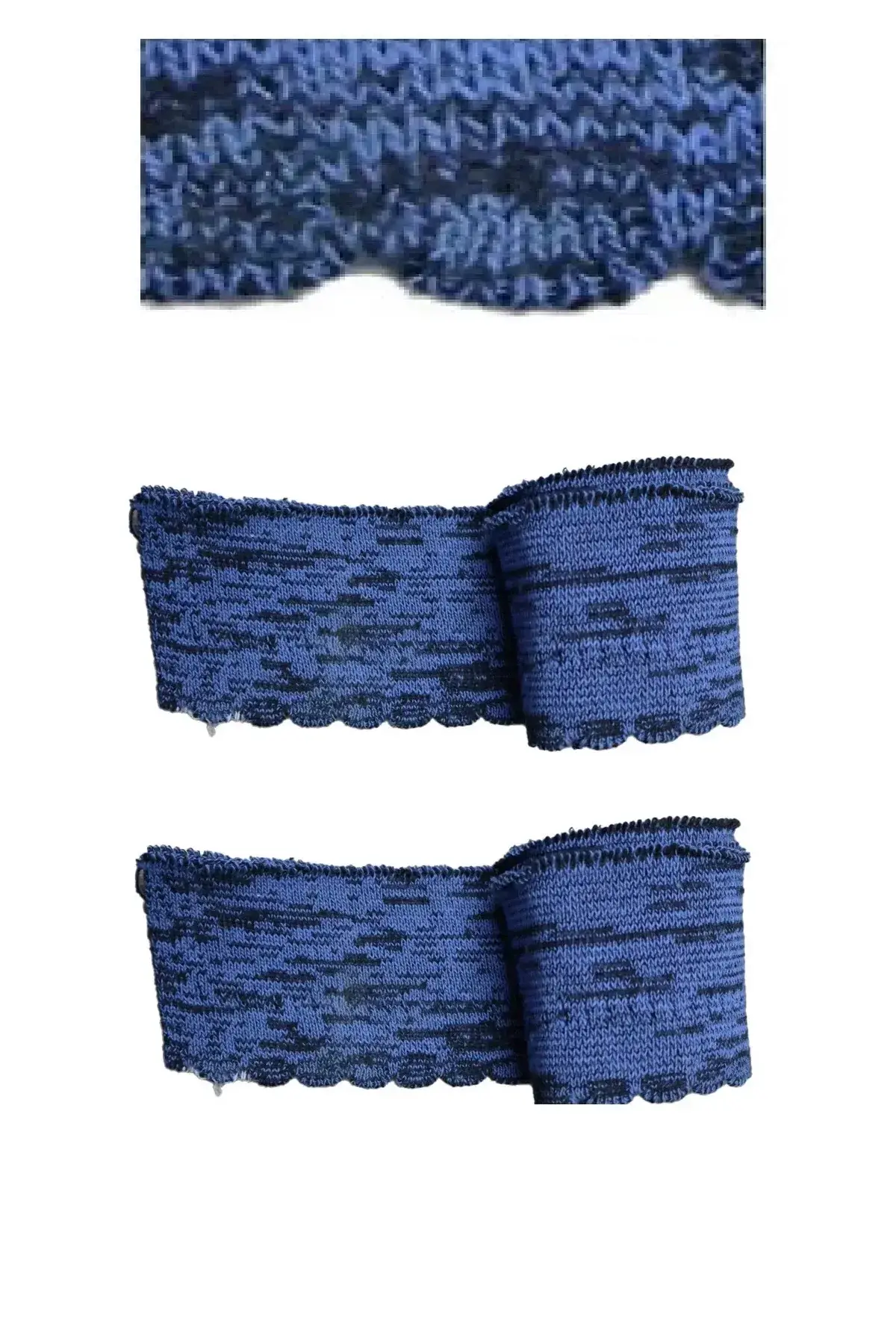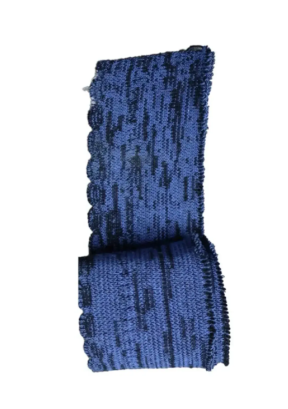 Bu ürün, mavi siyah karışım ajur desenli alacalı görünüme sahip triko dokuma ribana şerittir. 2 adet paketlenir. Her parça En 95 cm ve Boy 4.5 cm ölçüsündedir. Dikişte temiz ve düzenli bir bitiş sağlar; tüylenmeye karşı dayanıklıdır.