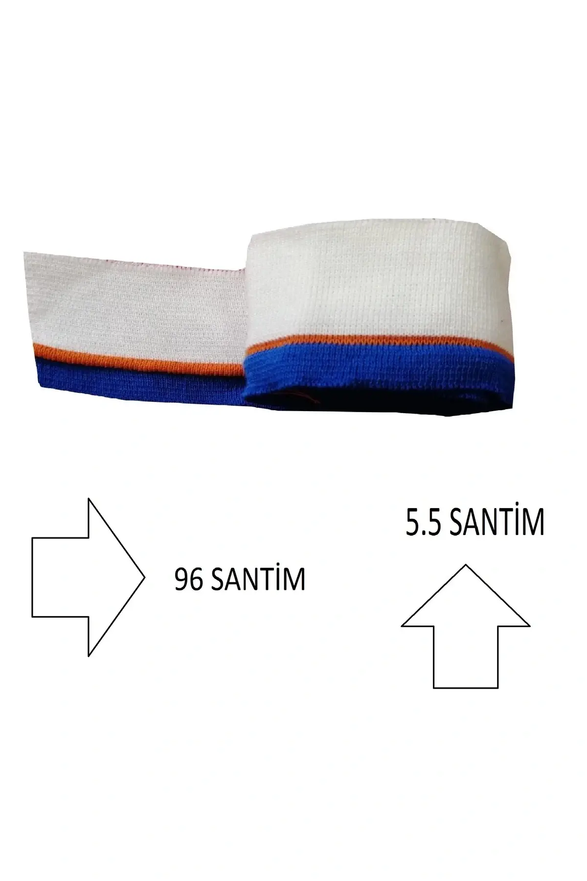 U5 FASHION kalitesiyle üretilen bu triko dokuma ribana şerit, beyaz zemin üzerine mavi ve portakal tonlarında çizgili özel tasarımıyla öne çıkar. Model kodu T523 olan bu set, 2 adet ribana şeritten oluşur. Her biri 96 cm uzunluğunda ve 5.5 cm yüksekliğindedir.
