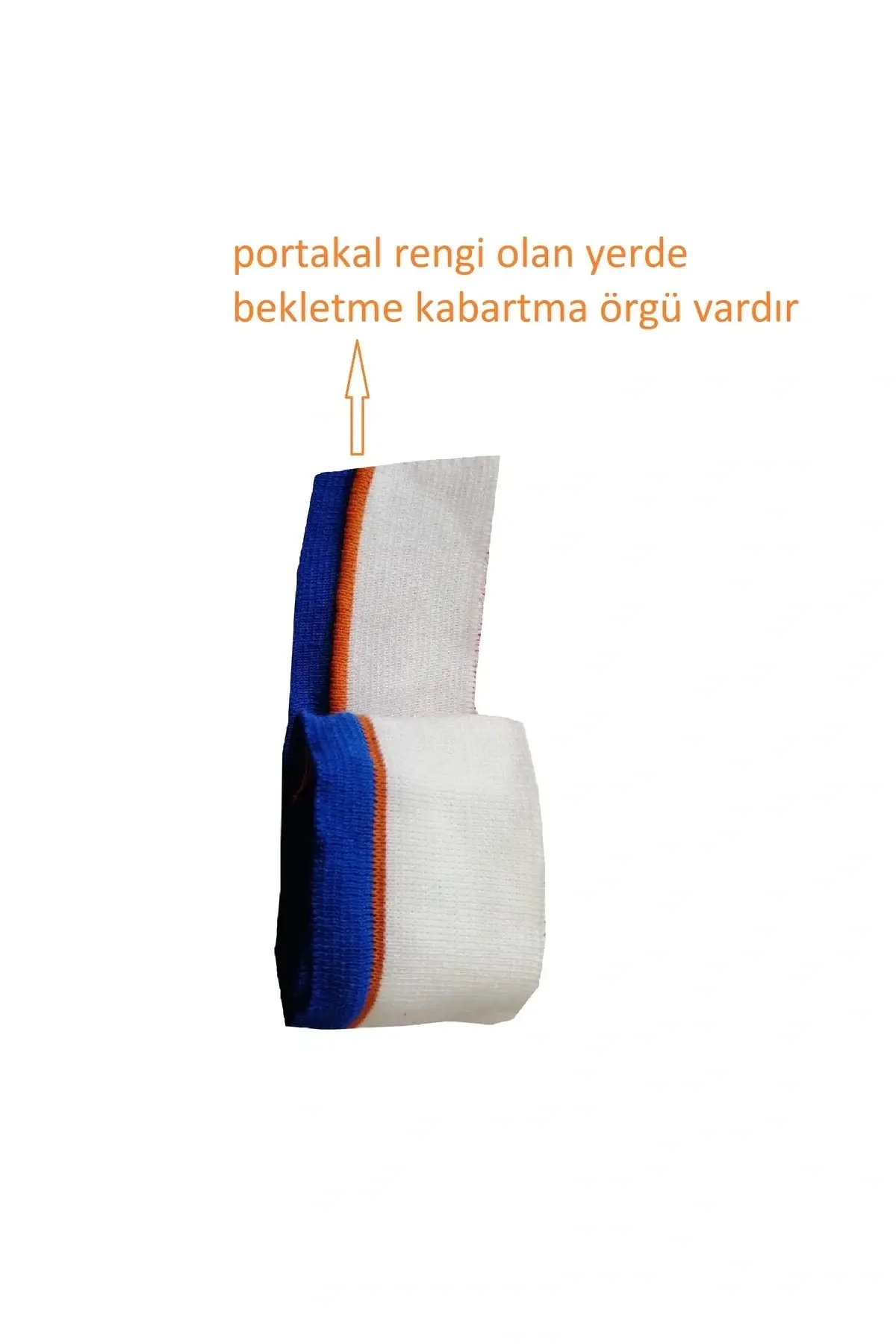 - Renk: Beyaz zemin, mavi ve portakal çizgili