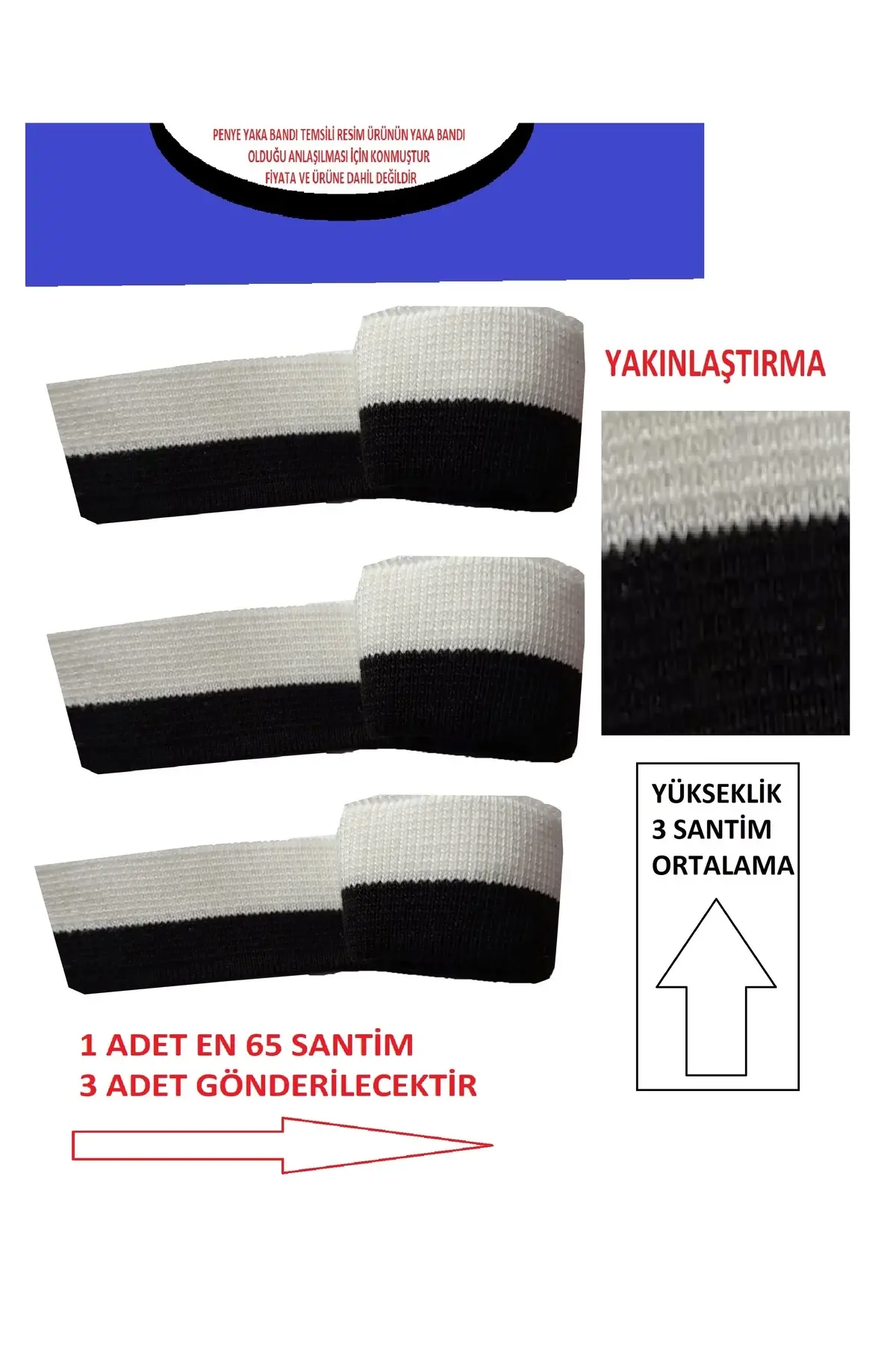 3 adet triko yaka bandı gönderilecektir. ; PENYELER İÇİN ÜRETİLMİŞ VE TRİKO DOKUMADIR.; ölçülerimiz ve belli açıklamalar resimlerdedir lütfen görselleride inceleyelim. ; ÜRÜNÜN ÜRETİLDİĞİ ÖRGÜ TİPİ VE KALINLIĞI. ; 14 GG NUMARA TRİKO DOKUMA. ; DOLU İĞNE 2 TARAFI AYNI ÖRGÜ VE RENKTİR. ; ESNEME HAFİF TRİKO OLDUĞUNDAN VE ÖRGÜ TİPİNDEN. ; ÜRÜN YIKAMA VE ÜTÜLEME TALİMATI. ; 30 derecede yıkamaya uygundur. ; normal ütülemeye uygundur. ; doğru bakım ve yıkamada. ; tüylenme yapmaz 1.ci kalite iplik ve dokuma. ; KULLANANLAR: terziler tasarımcılar modelistler stilistler ve hobi dikiş işleriyle uğraşanlar. ; hobi tasarım ve üretim ara malzemesi olarak kullanılmaktadır. ; en iyi fotoğraf makinası ve kamarayı kullan sakta. ; ekran ışık ve çekim ayarlarından dolayı % 10 renk farklılıkları oluşacaktır. ; verilen ölçülerde azda olsa trikonu doğasından dolayı ( -+ ) santimler oluşacaktır. ; anlayışınız için teşekkürler. ; PENYE OLARAK EKLENEN RESİM ÜRÜNÜN HANGİ ALANDA KULLANILDIĞINI ; GÖSTERMEK İÇİN EKLENMİŞTİR ÜRÜNLE ALAKASI YOKTUR ; FİYATA SATIŞA DAHİL DEĞİLDİR ; DAHA FAZLA RİBANA -KOL BANDI -PENYE YAKA BANDI -İÇİN LÜTFEN MAĞAZAMIZI ZİYARET EDİNİZ ;