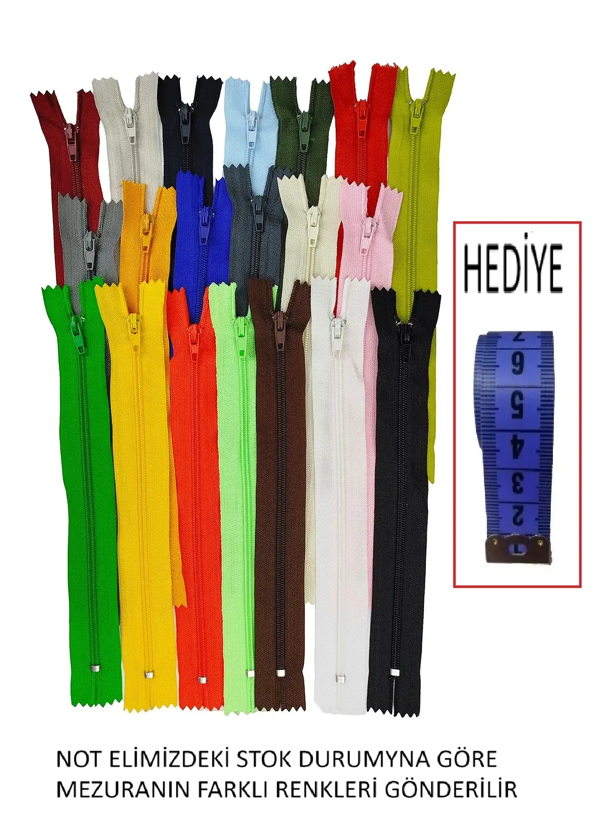 Fermuar 18 cm | 20 Adet Karışık Renk Seti (Mezura Hediyeli)