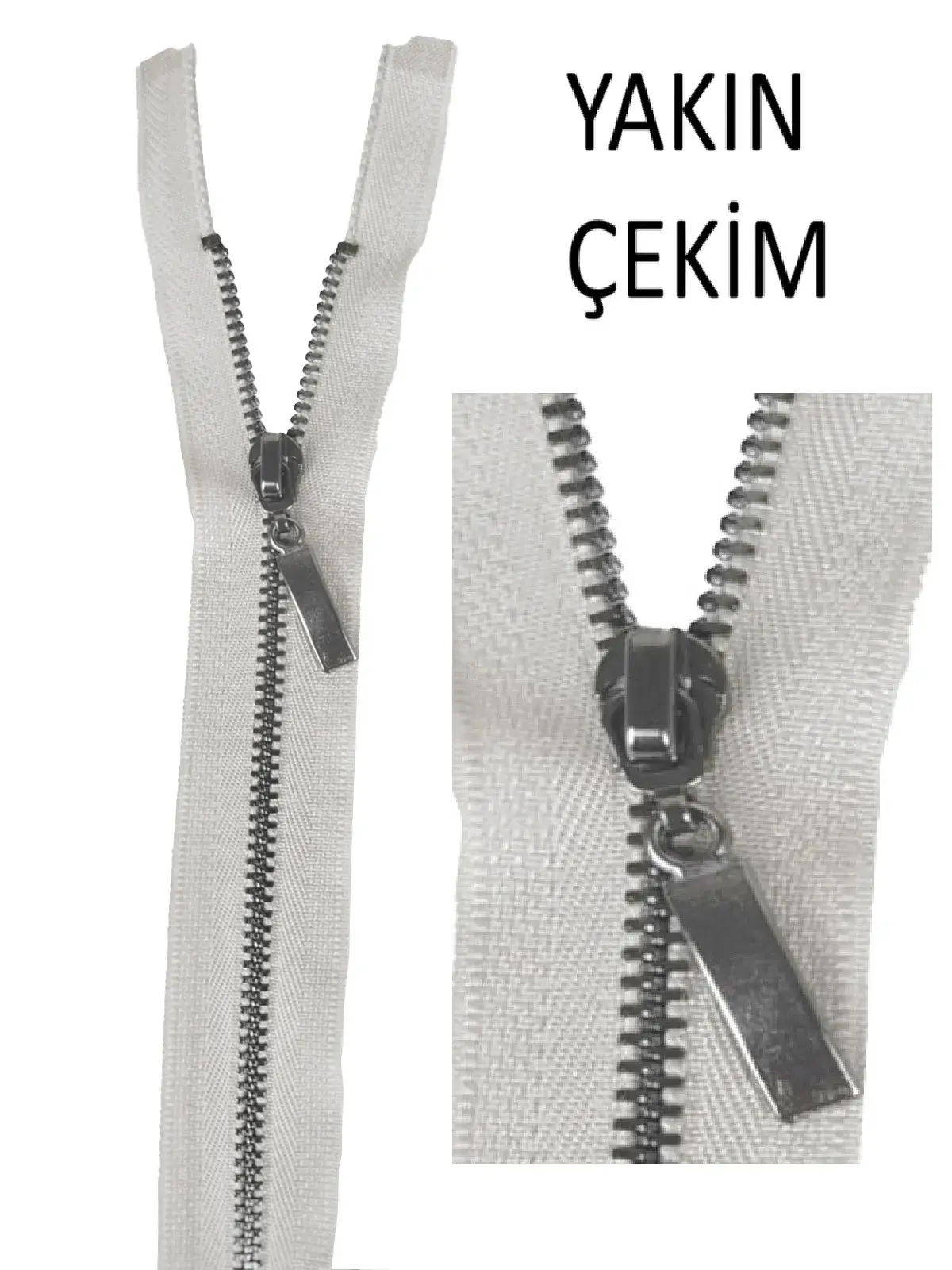 Fermuar metal dişli beyaz rengi ve 55 cm uzunluğu ile dış giyim, çanta ve aksesuar üretimi gibi çeşitli dikiş projelerinde kullanılabilen bir üründür. Renk tonu birçok farklı kumaşla uyum sağlayarak tasarımlarda bütünlük sunar.