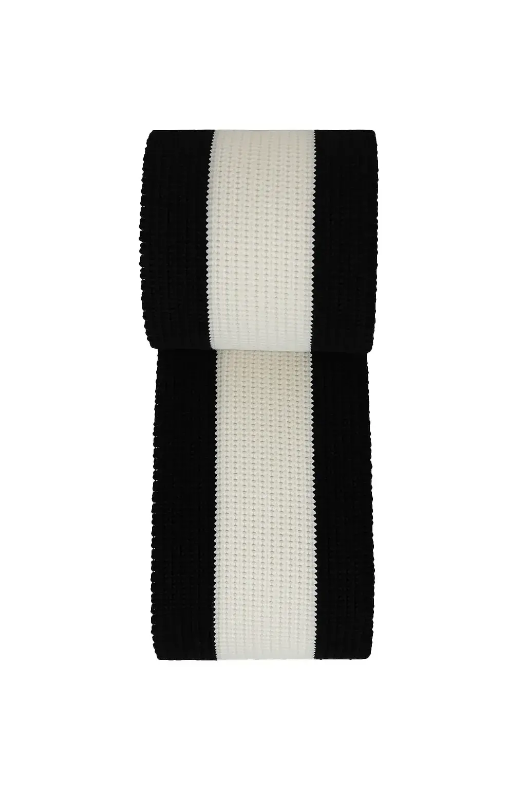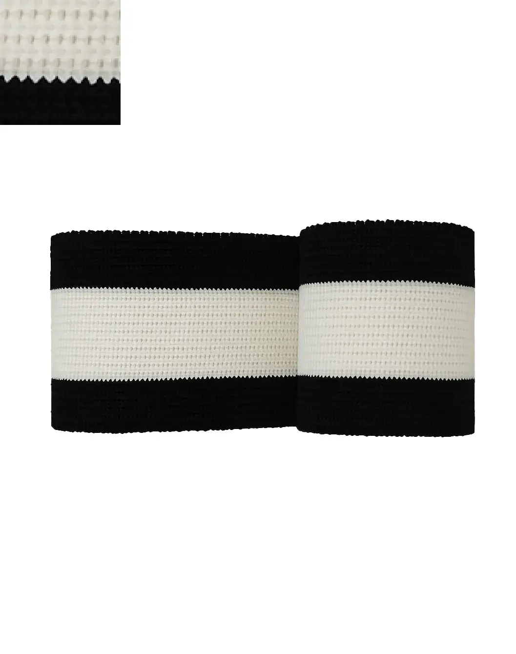 Siyah beyaz çizgili ribana bant, triko dokuma yapısı sayesinde dayanıklı ve uzun süreli kullanım sunar. 88 cm en ve 4.5 cm yükseklik ölçüsündeki bu ribana kumaş, hobi projeleri, giysi onarımları ve özel tasarım çalışmalarında pratik bir çözümdür. Tüylenmeye karşı dayanıklı yapısıyla temiz ve düzenli dikiş sağlar.