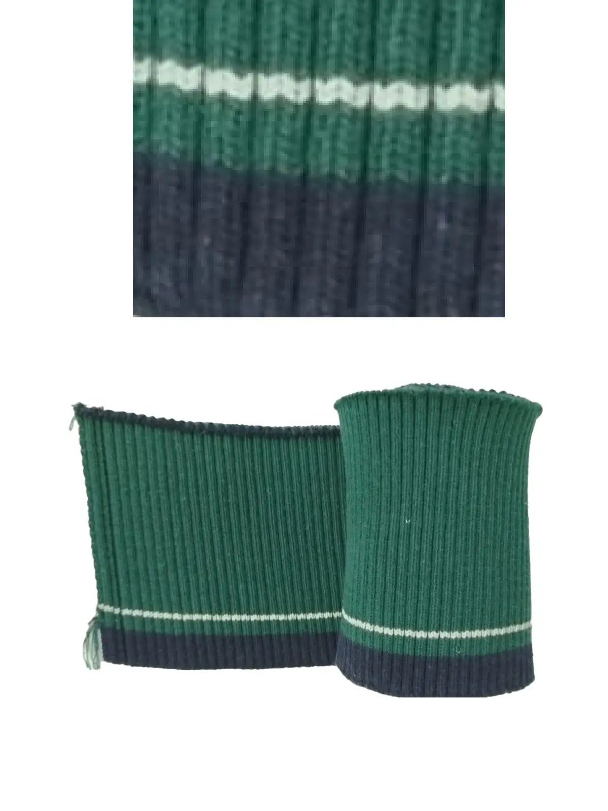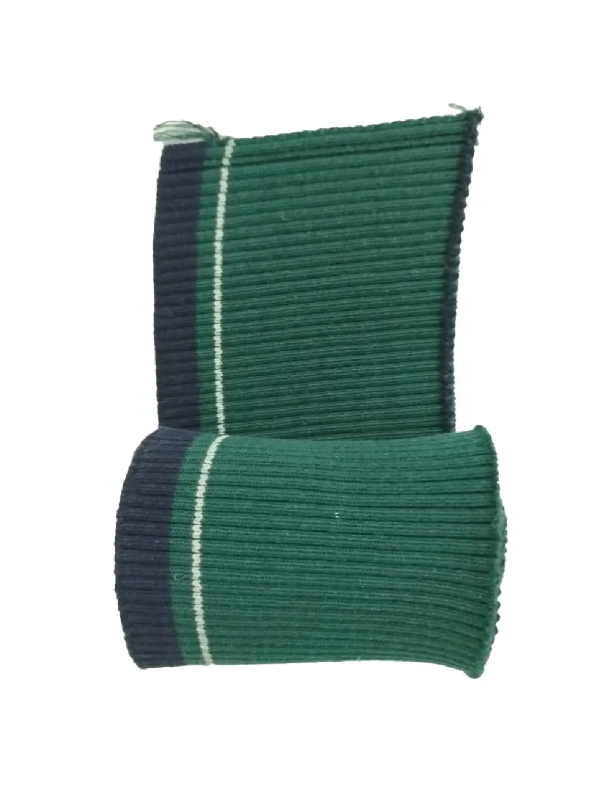 Kol Ribanası – Triko Dokuma Pamuklu 2x1 Fitilli Bant Yeşil Zemin Lacivert-Beyaz Çizgili (90x8 cm – 1 Adet)