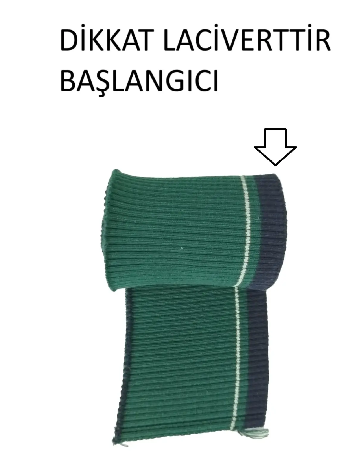 Bu ürün, triko dokuma yöntemiyle üretilmiş 2x1 fitilli pamuklu bir kol ribanasıdır. Yeşil zemin üzerine lacivert ve beyaz çizgilerle tasarlanmış olup, 90 cm en ve 8 cm boy ölçülerine sahiptir. Tek parça (1 adet) olarak üretilen bant, çok amaçlı tekstil ve dikiş uygulamaları için kullanılabilir.